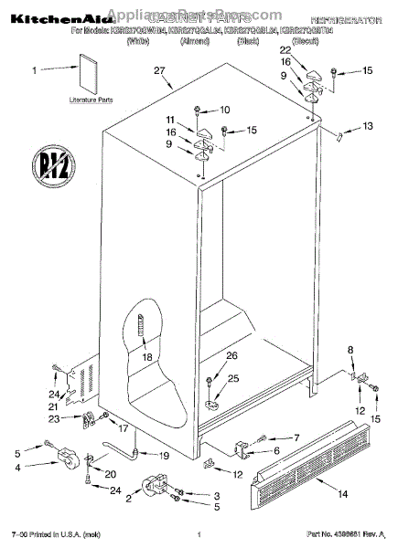 Parts for Kitchenaid KSRS27QGBL04: 01 - Cabinet, Literature Parts