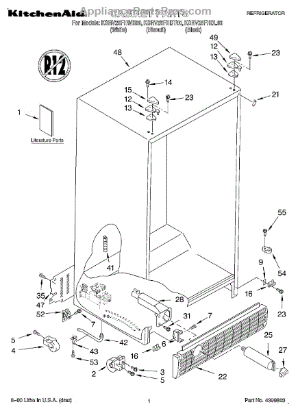 Parts for Kitchenaid KSRV25FHBT00: 01 - Cabinet, Literature Parts