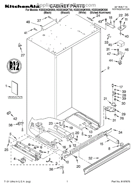 Parts for Kitchenaid KSSS36QKB00: 01 - Cabinet, Literature Parts