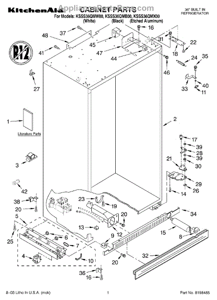 Bottom refrigerator hinge. For bottom freezer hinge use part number W10527053.