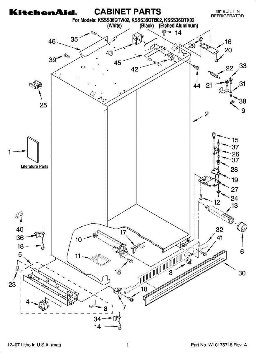Support base bracket for side-by-side refrigerators. Mounts on the front left side to provide structural support. Replace if cracked or broken.