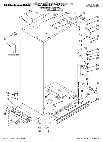 Parts for Kitchenaid KSSS42FTX02: 01 - Cabinet Parts