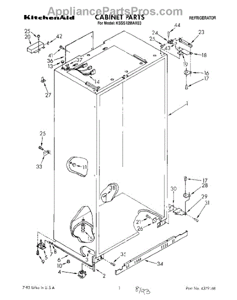 Parts for Kitchenaid KSSS42MAX03: 01 - Cabinet Parts