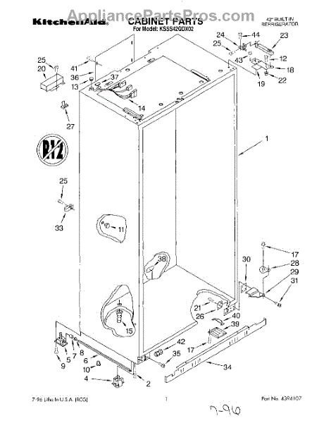 Parts for Kitchenaid KSSS42QDX02: 01 - Cabinet Parts