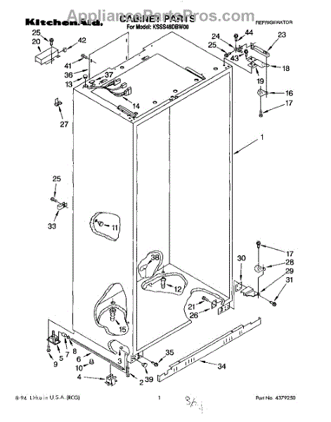 Parts for Kitchenaid KSSS48DBW00: 01 - Cabinet Parts