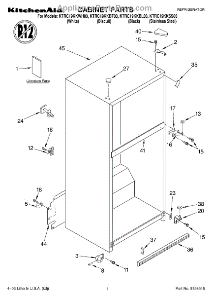 The Hinge Washer is an OEM replacement part for Whirlpool refrigerators. This small washer plays a supports the refrigerator door hinge assembly. Center hinge plastic washer. Causes of a bad hinge washer are generally normal wear and tear from extensive use. As the washer absorbs pressure each time the door is opened or closed, it can gradually deteriorate or crack. Physical damage is also possible if the door is accidentally struck or slammed. Symptoms of a worn or damaged hinge washer include: