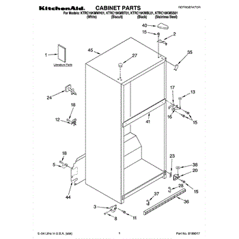 Parts for Kitchenaid KTRC19KMBL01: 01 - Cabinet Parts