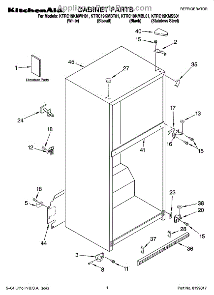 Parts for Kitchenaid KTRC19KMWH01: 01 - Cabinet Parts