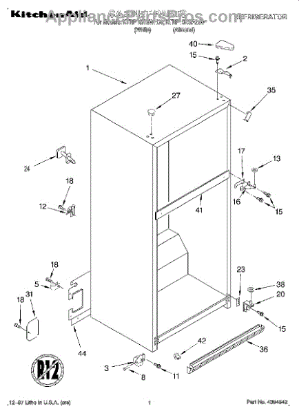 The Hinge Washer is an OEM replacement part for Whirlpool refrigerators. This small washer plays a supports the refrigerator door hinge assembly. Center hinge plastic washer. Causes of a bad hinge washer are generally normal wear and tear from extensive use. As the washer absorbs pressure each time the door is opened or closed, it can gradually deteriorate or crack. Physical damage is also possible if the door is accidentally struck or slammed. Symptoms of a worn or damaged hinge washer include: