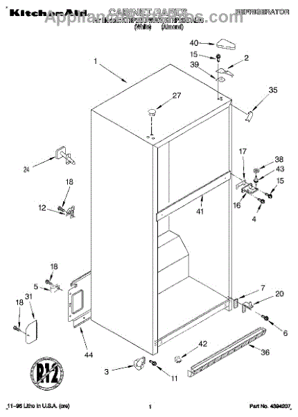 Parts for Kitchenaid KTRP20KDAL03: 01 - Cabinet Parts
