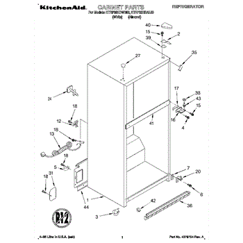 Parts for Kitchenaid KTRP20KDWH00: 01 - Cabinet Parts