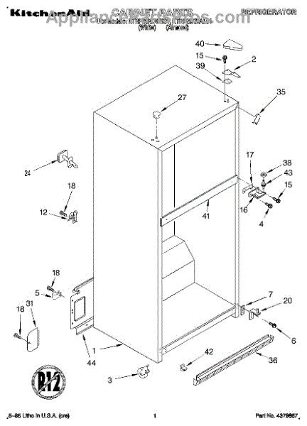 Parts for Kitchenaid KTRP20KDWH01: 01 - Cabinet Parts