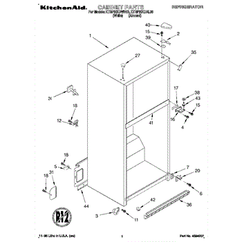 Parts for Kitchenaid KTRP20KDWH03: 01 - Cabinet Parts