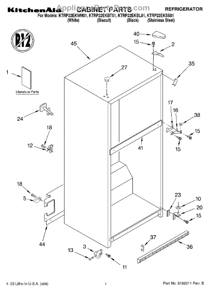 The Hinge Washer is an OEM replacement part for Whirlpool refrigerators. This small washer plays a supports the refrigerator door hinge assembly. Center hinge plastic washer. Causes of a bad hinge washer are generally normal wear and tear from extensive use. As the washer absorbs pressure each time the door is opened or closed, it can gradually deteriorate or crack. Physical damage is also possible if the door is accidentally struck or slammed. Symptoms of a worn or damaged hinge washer include: