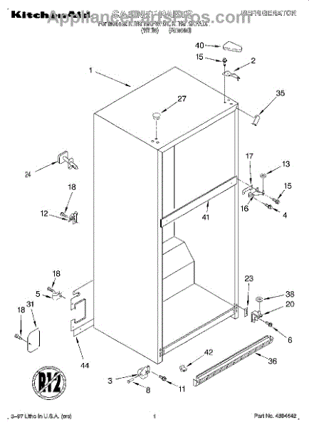 The Hinge Washer is an OEM replacement part for Whirlpool refrigerators. This small washer plays a supports the refrigerator door hinge assembly. Center hinge plastic washer. Causes of a bad hinge washer are generally normal wear and tear from extensive use. As the washer absorbs pressure each time the door is opened or closed, it can gradually deteriorate or crack. Physical damage is also possible if the door is accidentally struck or slammed. Symptoms of a worn or damaged hinge washer include: