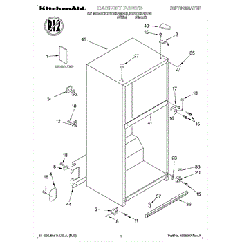 The Hinge Washer is an OEM replacement part for Whirlpool refrigerators. This small washer plays a supports the refrigerator door hinge assembly. Center hinge plastic washer. Causes of a bad hinge washer are generally normal wear and tear from extensive use. As the washer absorbs pressure each time the door is opened or closed, it can gradually deteriorate or crack. Physical damage is also possible if the door is accidentally struck or slammed. Symptoms of a worn or damaged hinge washer include: