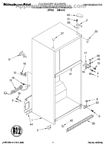 The Hinge Washer is an OEM replacement part for Whirlpool refrigerators. This small washer plays a supports the refrigerator door hinge assembly. Center hinge plastic washer. Causes of a bad hinge washer are generally normal wear and tear from extensive use. As the washer absorbs pressure each time the door is opened or closed, it can gradually deteriorate or crack. Physical damage is also possible if the door is accidentally struck or slammed. Symptoms of a worn or damaged hinge washer include: