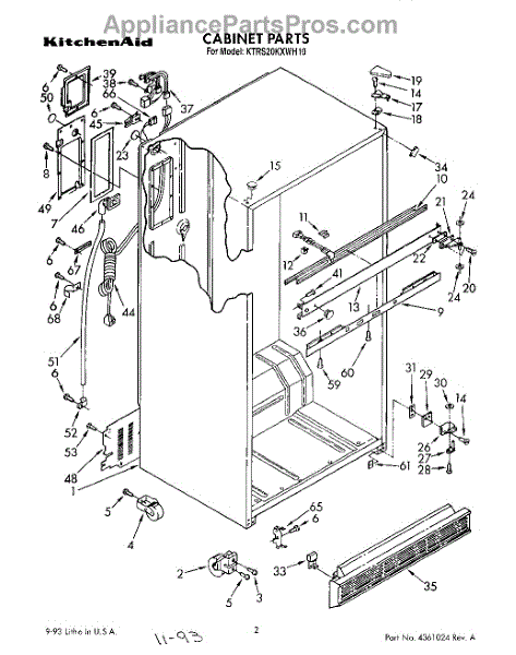 This cabinet roller assembly supports the refrigerator at the base and lets you roll the unit forward for cleaning or service. Replace a cracked or seized roller to restore smooth movement and a stable, level stance. What it does:
