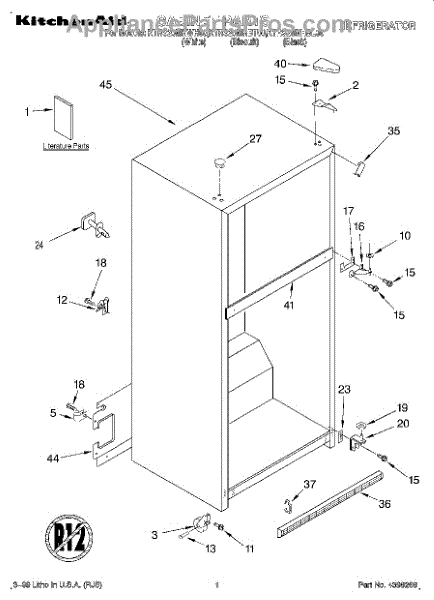 The Hinge Washer is an OEM replacement part for Whirlpool refrigerators. This small washer plays a supports the refrigerator door hinge assembly. Center hinge plastic washer. Causes of a bad hinge washer are generally normal wear and tear from extensive use. As the washer absorbs pressure each time the door is opened or closed, it can gradually deteriorate or crack. Physical damage is also possible if the door is accidentally struck or slammed. Symptoms of a worn or damaged hinge washer include: