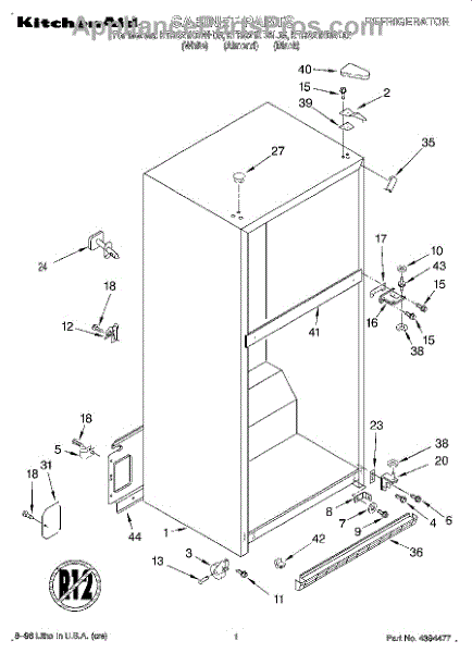 The Hinge Washer is an OEM replacement part for Whirlpool refrigerators. This small washer plays a supports the refrigerator door hinge assembly. Center hinge plastic washer. Causes of a bad hinge washer are generally normal wear and tear from extensive use. As the washer absorbs pressure each time the door is opened or closed, it can gradually deteriorate or crack. Physical damage is also possible if the door is accidentally struck or slammed. Symptoms of a worn or damaged hinge washer include: