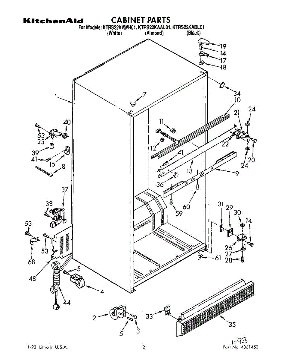 This cabinet roller assembly supports the refrigerator at the base and lets you roll the unit forward for cleaning or service. Replace a cracked or seized roller to restore smooth movement and a stable, level stance. What it does: