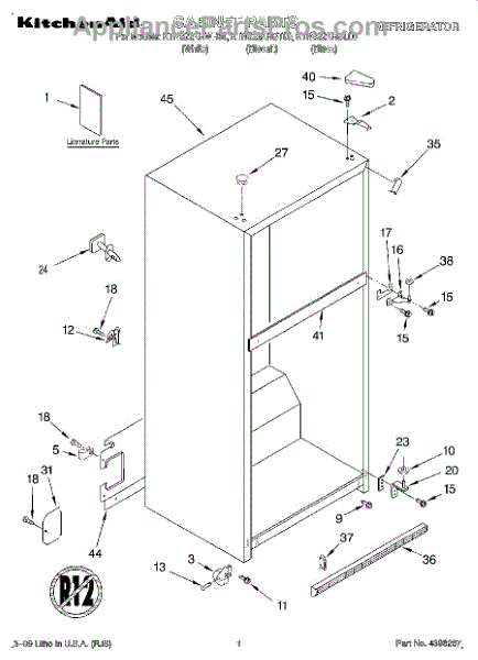 The Hinge Washer is an OEM replacement part for Whirlpool refrigerators. This small washer plays a supports the refrigerator door hinge assembly. Center hinge plastic washer. Causes of a bad hinge washer are generally normal wear and tear from extensive use. As the washer absorbs pressure each time the door is opened or closed, it can gradually deteriorate or crack. Physical damage is also possible if the door is accidentally struck or slammed. Symptoms of a worn or damaged hinge washer include: