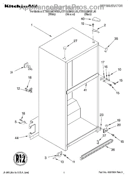 The Hinge Washer is an OEM replacement part for Whirlpool refrigerators. This small washer plays a supports the refrigerator door hinge assembly. Center hinge plastic washer. Causes of a bad hinge washer are generally normal wear and tear from extensive use. As the washer absorbs pressure each time the door is opened or closed, it can gradually deteriorate or crack. Physical damage is also possible if the door is accidentally struck or slammed. Symptoms of a worn or damaged hinge washer include: