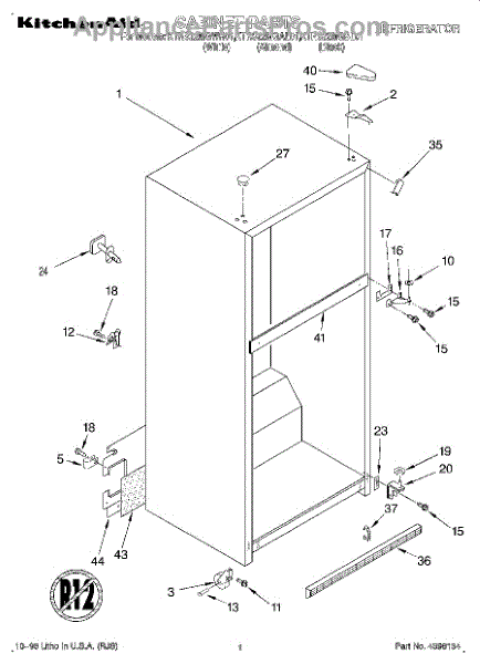 The Hinge Washer is an OEM replacement part for Whirlpool refrigerators. This small washer plays a supports the refrigerator door hinge assembly. Center hinge plastic washer. Causes of a bad hinge washer are generally normal wear and tear from extensive use. As the washer absorbs pressure each time the door is opened or closed, it can gradually deteriorate or crack. Physical damage is also possible if the door is accidentally struck or slammed. Symptoms of a worn or damaged hinge washer include: