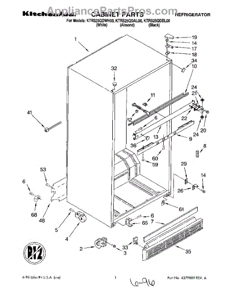 This cabinet roller assembly supports the refrigerator at the base and lets you roll the unit forward for cleaning or service. Replace a cracked or seized roller to restore smooth movement and a stable, level stance. What it does: