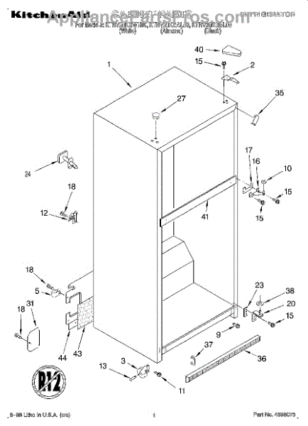 Parts for Kitchenaid KTRV20KGWH00: 01 - Cabinet Parts