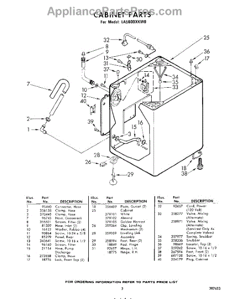 Parts for Whirlpool LA5600XKW0: 03 - Cabinet Parts