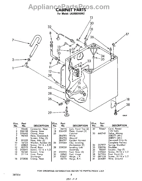 Parts for Whirlpool LA5600XKW2: 08 - Cabinet Parts