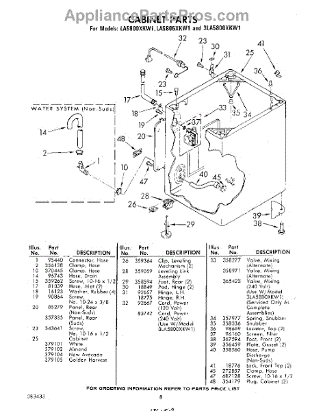 Parts for Whirlpool LA5805XKW1: 08 - Cabinet Parts