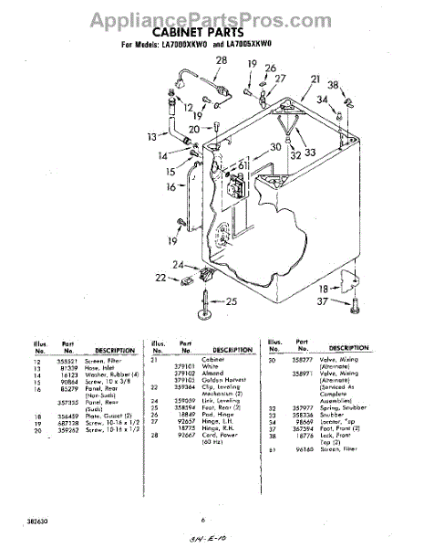 Parts for Whirlpool LA7000XKW0: 06 - Cabinet Parts