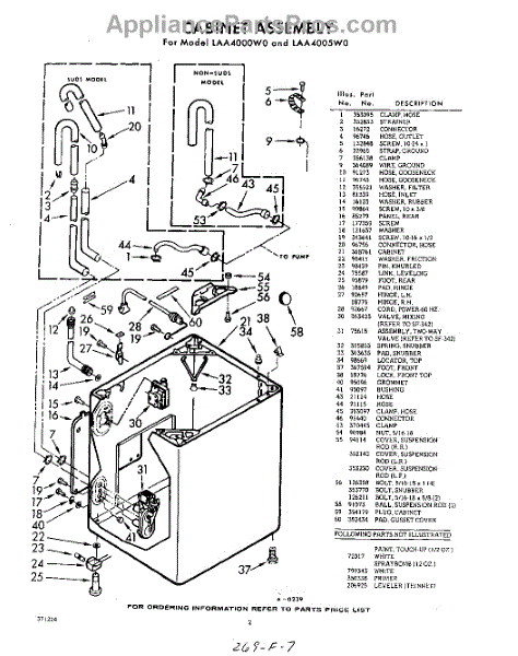 Parts for Whirlpool LAA4000W0: 02 - Cabinet Parts