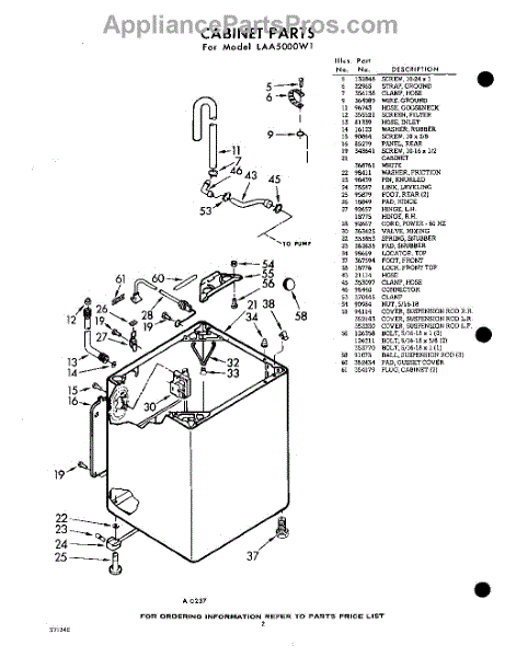 Parts for Whirlpool LAA5000W1: 02 - Cabinet Parts