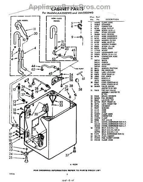 Parts for Whirlpool LAA5500W0: 02 - Cabinet Parts