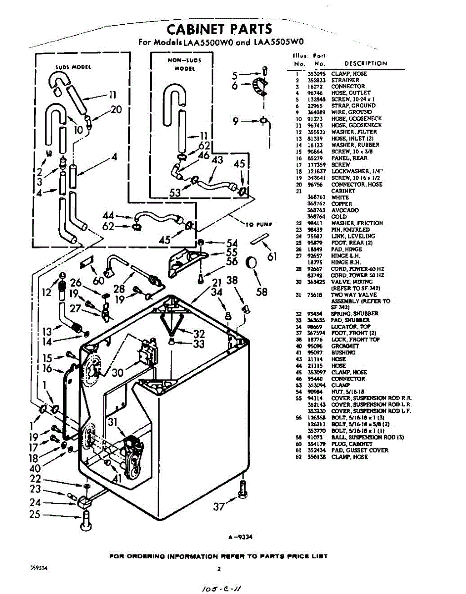 Parts for Whirlpool LAA5505W0: 02 - Cabinet Parts