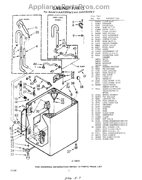 Parts for Whirlpool LAA5505W2: 02 - Cabinet Parts