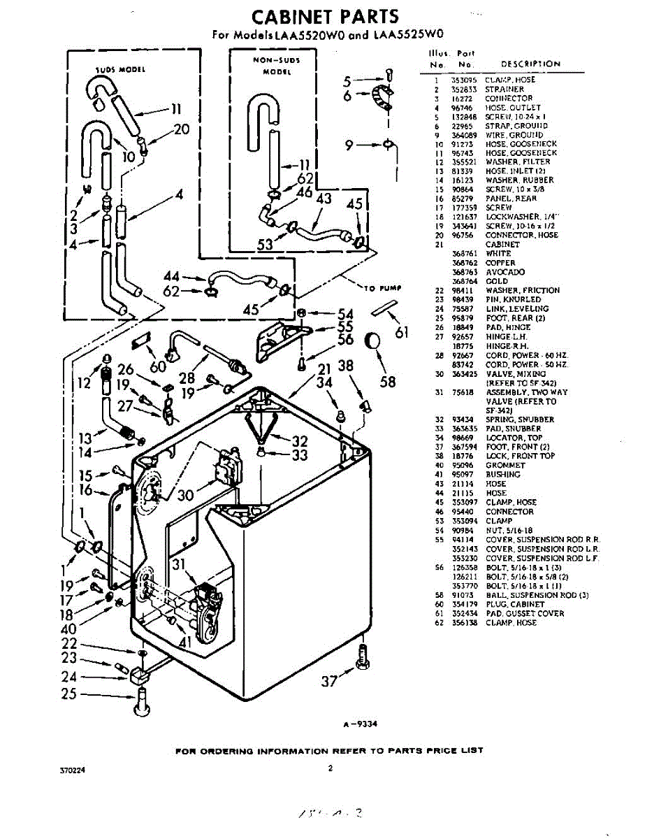 Parts for Whirlpool LAA5520W0: 02 - Cabinet Parts