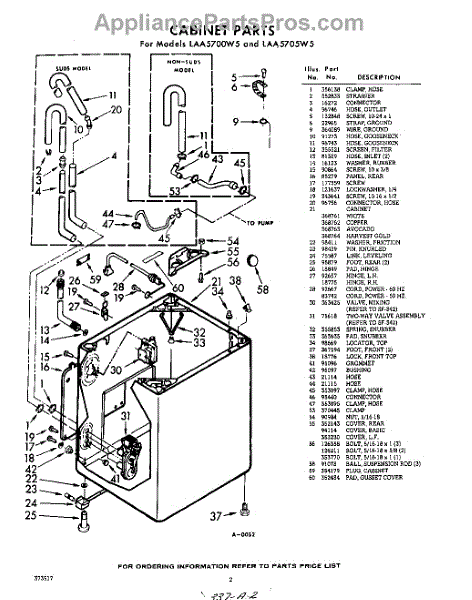 Parts for Whirlpool LAA5700W5: 02 - Cabinet Parts