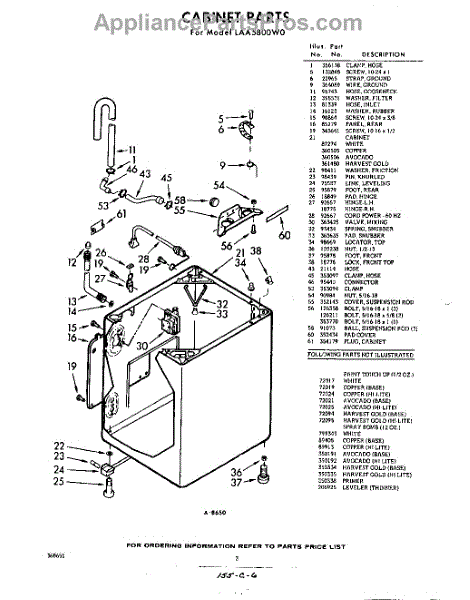 Parts for Whirlpool LAA5800W0: 02 - Cabinet Parts