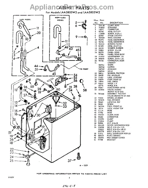 Parts for Whirlpool LAA5805W2: 02 - Cabinet Parts