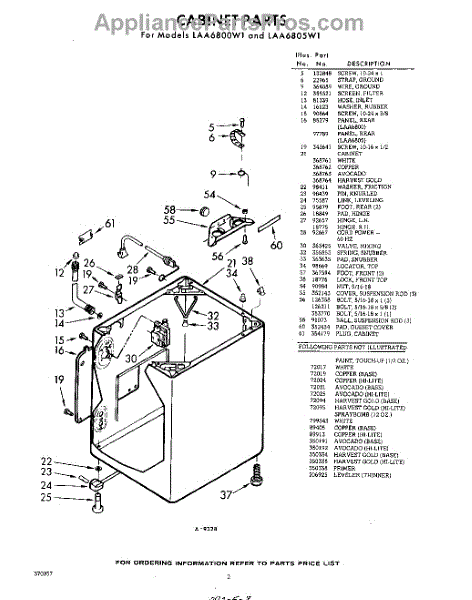 Parts for Whirlpool LAA6805W1: 02 - Cabinet Parts