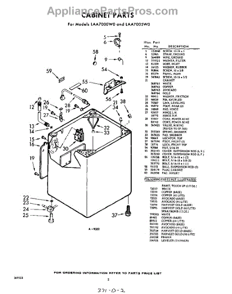 Parts for Whirlpool LAA7000W0: 02 - Cabinet Parts
