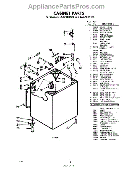 Parts for Whirlpool LAA7880W0: 02 - Cabinet Parts