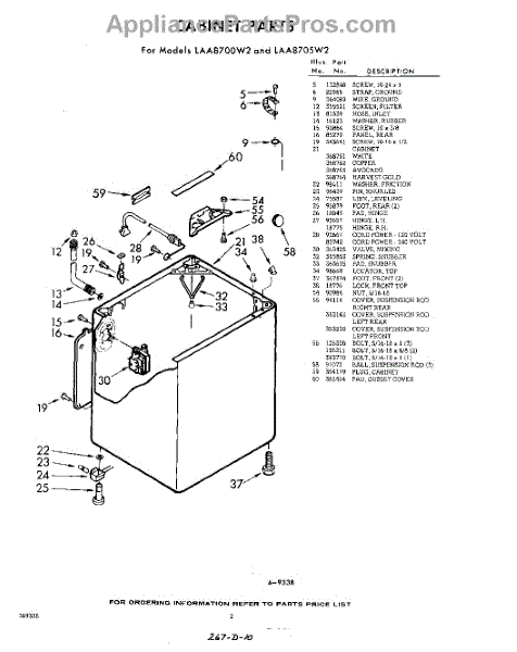 Parts for Whirlpool LAA8705W2: 02 - Cabinet Parts