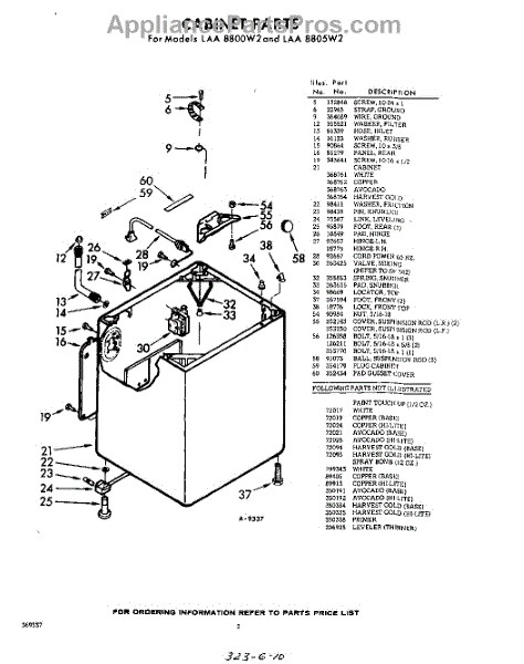 Parts for Whirlpool LAA8800W2: 02 - Cabinet Parts