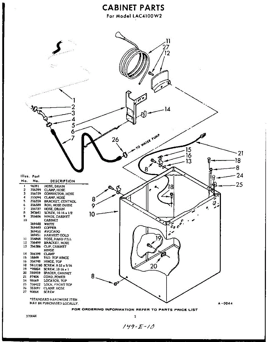 Parts for Whirlpool LAC4100W2: 02 - Cabinet Parts