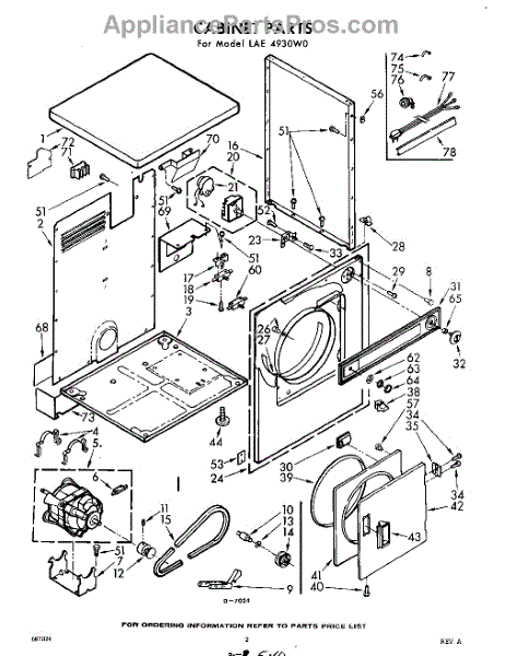 Parts for Whirlpool LAE4930W0: 02 - Cabinet Parts